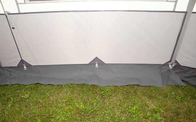 Praktisches Wohnwagen-Teilvorzelt. Vorderwand mit zwei Eingängen (hochrollbar). Drei verstärkte Abspanngurte sorgen für zusätzliche Stabilität. Faulstreifen wahlweise innen oder außen abspannbar. Vier große Fenster, welche von innen blickdicht durch Fensterklappen verschlossen werden können. Zusätzlicher Seiteneingang links und rechts. Seitliche Fenster mit zusätzlichem Moskitogaze. Doppelt abgedeckte Reißverschlüsse sorgen für Wind- und Regenschutz. Inkl. 2 Schaumstoffwulste zur optimalen Anbringung am Wohnwagen. Schnellspanner am Gestänge sorgen für einen erleichterten Zeltaufbau. Die Größe der Kederschiene beträgt Ø 7 mm. Die Zelthöhe im Inneren beträgt: 220 cm.