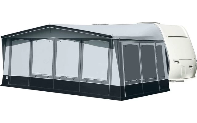 Bei diesem Saison- Vorzeltmodell kommt das atmungsaktive „Ten Cate“ – Gewebe zum Einsatz. Das Top-Modell für den Saisoneinsatz. Frei wählbare Eingangspositionen durch die Elementtechnik der Vorderwand. Für die Seitenwände gibt es insgesamt vier Fensterelemente: zwei Folienfenster und zwei Lüftungsfenster. Diese vier Elemente können nach Wunsch positioniert werden. Auch ein Türelement (lieferbar gegen Mehrpreis) kann in den Seitenwänden variabel eingesetzt werden. Fensterklappen, Wetterschutzabdeckung der Reißverschlüsse, eine verschließbare Hochentlüftung und ein 28mm Stahlrohrgestänge mit PowerGrip und Vordachverstärkung komplettieren die umfangreiche Serienausstattung.