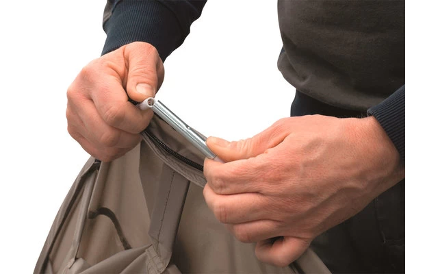 • Tür mit Netzeinsatz kann mit einem Reißverschluss am Zeltboden befestigt werden und ermöglicht so eine perfekte Abdichtung