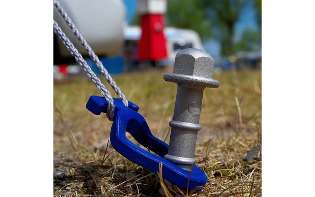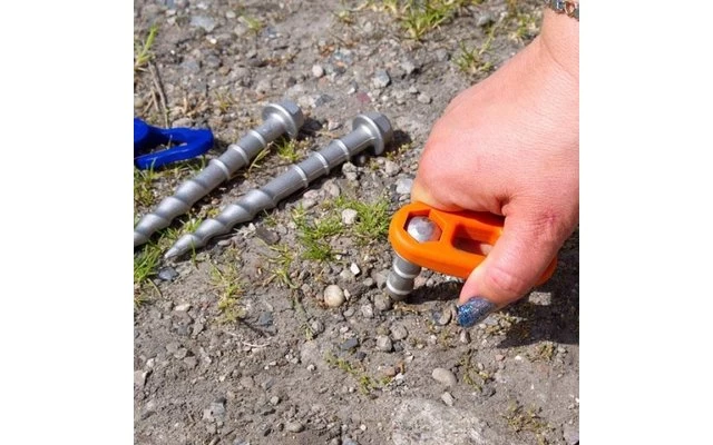 Zum Einschlagen mit dem Hammer. Links herum gedreht, ob maschinell oder per Handschlüssel, kommt der Hering schnell wieder heraus. Leichter als ein herkömmlicher Metallhering, aber x-mal besserer Halt! Konzipiert, ausschließlich für harte Böden. Der runde Kopf ermöglicht es beim Einschlagen die Richtung der Spitze zu ändern. Durch den höhenverstellbaren Haken braucht man nicht immer bis zum Ende eintreiben.