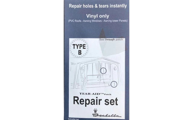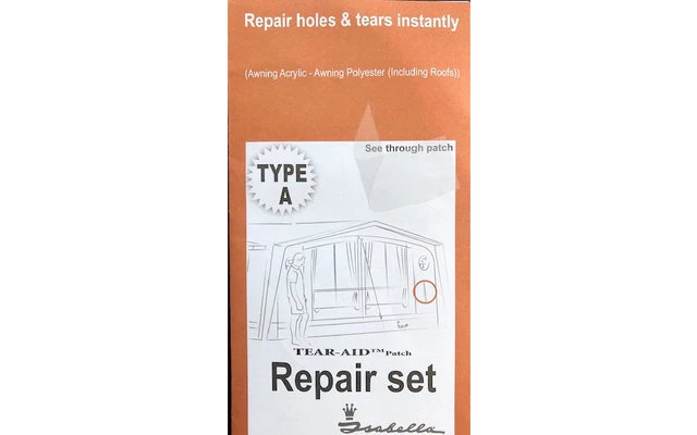 Wenn das Vorzelt schnell und günstig repariert werden soll, dann ist das Isabella Reparatur-Set die richtige Lösung! Die Reparatur-Flicken sind beliebig zuschneidbar und selbstklebend, mit Verstärkungsschnur für Risse.