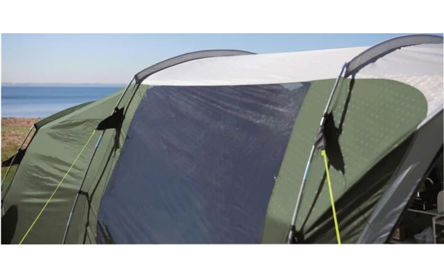- Große Fenster lassen die Camper das Geschehen außerhalb hautnah erleben oder werden komplett geschlossen, um die Privatsphäre zu wahren Hinterlüftungssystem für eine optimale Durchlüftung – sowohl bei offenem als auch geschlossenem Zelt