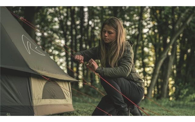 Die PRS-Version des beliebten Klondike Bell-Zelts aus Polyester bietet bis zu sechs Personen ein hervorragendes Maß an Komfort. Die senkrechte Tür ermöglicht einen leichten Zugang, praktisch vor allem bei schlechtem Wetter. Der Zeltboden lässt sich per Reißverschluss bis zur Leichtmetallmittelstange öffnen und an der Tür aufrollen, um einen sicheren Platz für einen optionalen Ofen oder dreckige Stiefel zu schaffen. Die Internal Apex Vent Control lässt sich aus dem Zeltinneren ganz leicht öffnen und schließen und ergänzt die niedrig angebrachten Lüftungsöffnungen mit Netzgewebe zur besseren Belüftungsregulierung.
