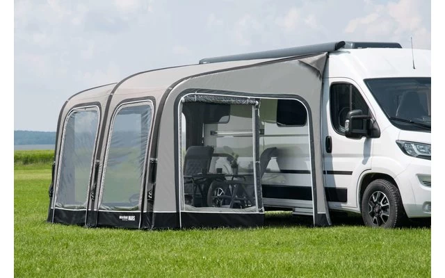 Freiheit pur, optimale Flächennutzung, hohe Funktionalität, perfekte Form … Starten Sie Ihre Urlaube mit dem Luftvorzelt Mars mit einer Vorzelttiefe von 250 cm. Erleben Sie eine hohe Passgenauigkeit und eine perfekte Breite. Ausgestattet mit einem neu entwickelten HydroTech Ripstop Material bietet Ihnen das Luftvorzelt MARS nicht nur einen zuverlässigen Reisebegleiter für Ihren Kastenwagen. In Verbindung mit einer Polyurethan- Beschichtung erhält HydroTech Ripstop einen fühlbaren Softtouch-Charakter. In den Seitenwänden befinden sich je eine Tür und ein Fenstergaze-Segmen. Diese können bei Bedarf auch untereinander getauscht werden. In der Vorderwand befinden sich zwei Fenster-Segmente, die bei Bedarf abgeklappt werden können. Natürlich können Sie auch alle Segmente, komplett barrierefrei in kurzer Zeit entfernen. Dann entsteht ein praktisches Sonnendach.